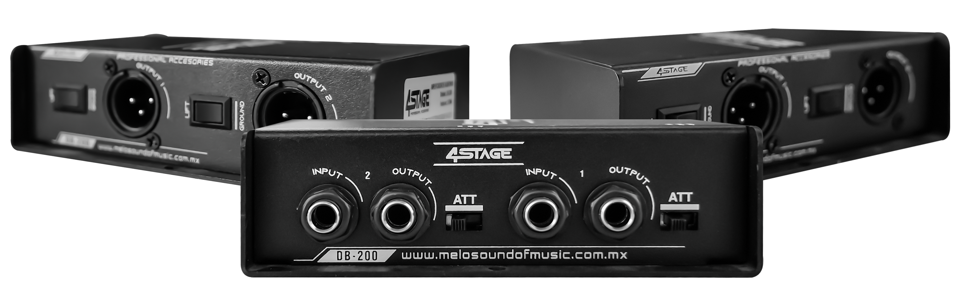 El DB-200 es una caja directa pasiva doble (2 canales) diseñada para convertir señales desbalanceadas de instrumentos o equipos de línea en señales balanceadas profesionales, eliminando ruidos y pérdidas de calidad en recorridos largos hacia la consola o sistema PA.