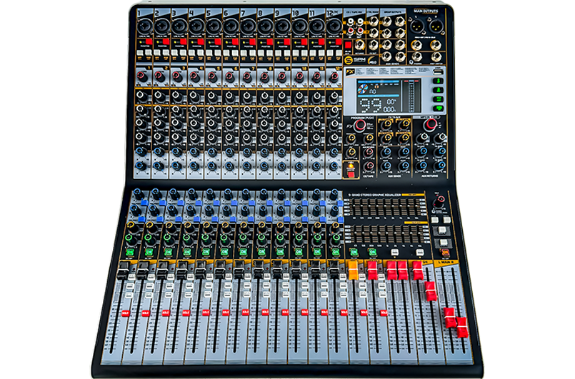 La GL12 es una mezcladora de audio profesional de 12 canales mono que combina potencia, conectividad y precisión. Diseñada para eventos en vivo, estudios, iglesias, bares o salas de ensayo, ofrece una gestión de audio completa con entradas combo XLR/TRS, procesador de efectos digitales, ecualizador gráfico de 9 bandas, interfaz de audio USB, reproductor y grabador MP3, y conectividad Bluetooth.