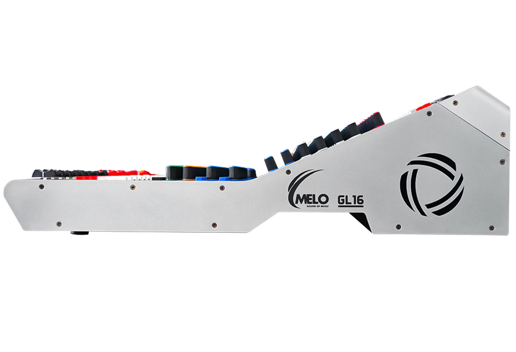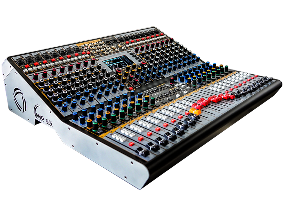 La GL16 es una mezcladora profesional de 16 canales diseñada para trabajo rudo en shows en vivo, eventos corporativos, iglesias, estudios móviles y producción en general. Combina una arquitectura analógica confiable con funciones digitales modernas: procesador de efectos, interfaz USB 2×2, reproductor/ grabador MP3, Bluetooth, y un sistema de enrutamiento muy completo con 4 subgrupos y 4 envíos auxiliares.