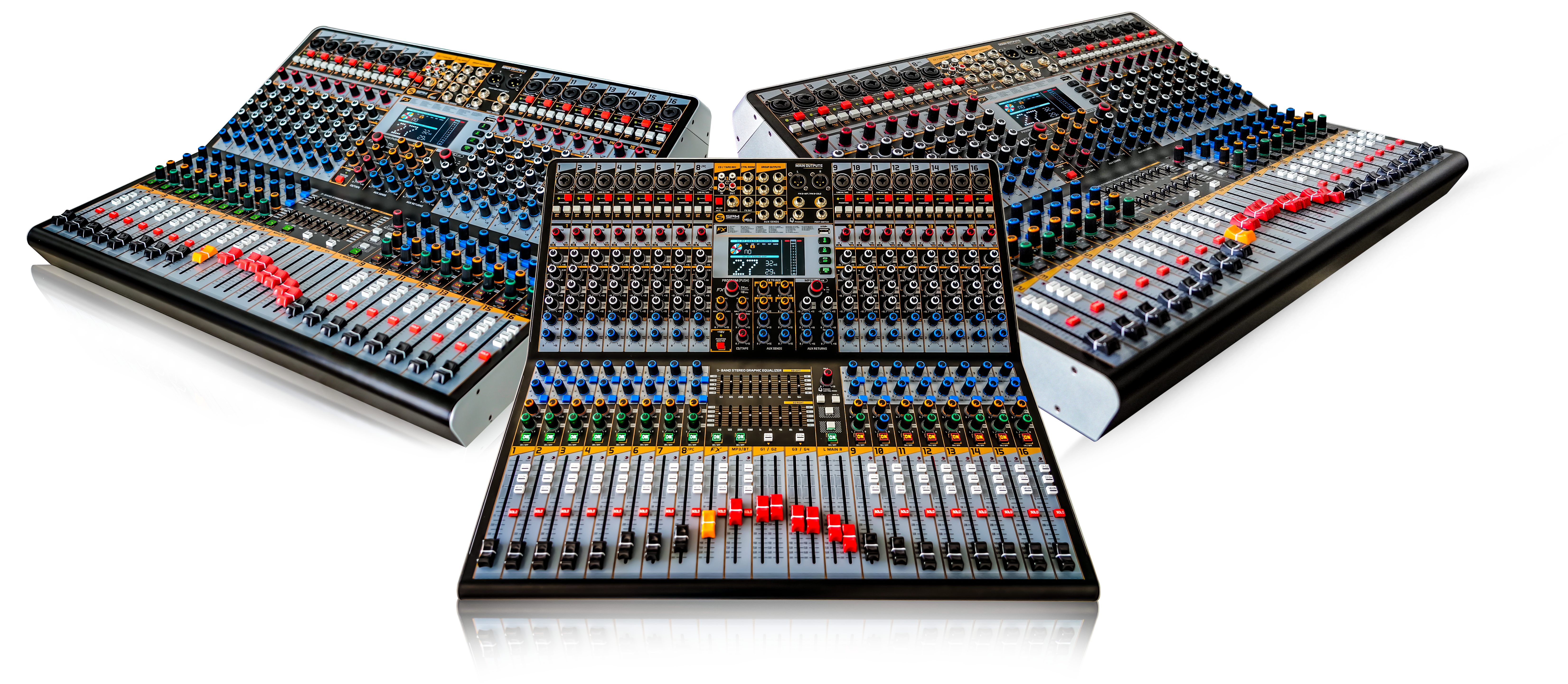 - Faders de 60 mm. con control preciso.
